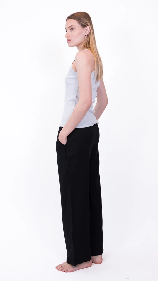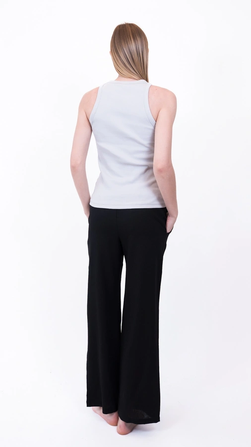 הדוגמנית לובשת מידה 1, בשילוב מכנסי שושי פשתן שחור מידה 1.